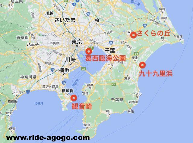 他には、千葉県成田市のさくらの丘、東京都江戸川区の葛西臨海公園、神奈川県横須賀市の観音崎に行ったことがあります。( google map )