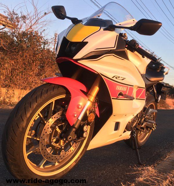 いつものように30分前に九十九里浜着となるように走りましたが、今年は大渋滞のために九十九里浜に到達できませんでした。代わりに、冬の畑でYZF-R7越しの日の出です。