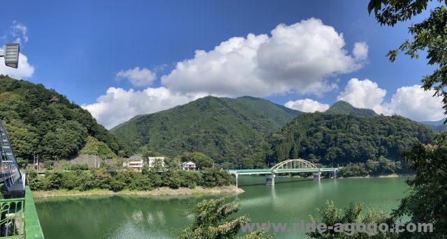 奥多摩湖に架かる三頭橋から見た、深山橋。