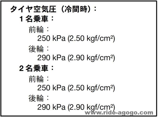 タイヤゲージで測ってみると、前後タイヤの空気圧は 前2.0kg / 後2.5kg でした。これ、規定値は 前2.5kg / 後2.9kg なんですよ。いやー、ここのところタイヤが何だか変だなとは感じていましたが、空気が抜けてましたね。