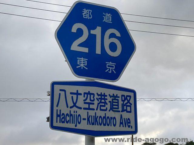 ここは、八丈島空港前の大通りですが、「都道216号」の標識がありました。
