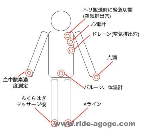 ヘリ搬送時、気胸の空気を抜くために切開されました。