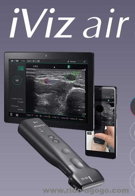 ワイヤレス超音波画像診断装置 FUJIFILM iViz air ( https://www.fujifilm.com/jp/ja/healthcare/ultrasound/iviz-air/iviz-air-linear )