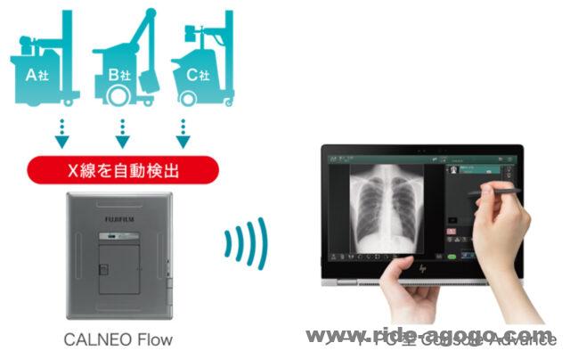 一般X線撮影 間接変換FPD装置 FUJIFILM DR CALNEO Flow ( https://www.fujifilm.com/jp/ja/healthcare/x-ray/digital-xray-imaging-dr/calneo-f-mobilesystem )